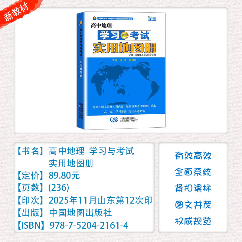 2026新教材高中地理图册学习与考试实用地图册中国地图出版社必修+选择性必修区域地理实用地图册高一高二高三高考地理实用地图册