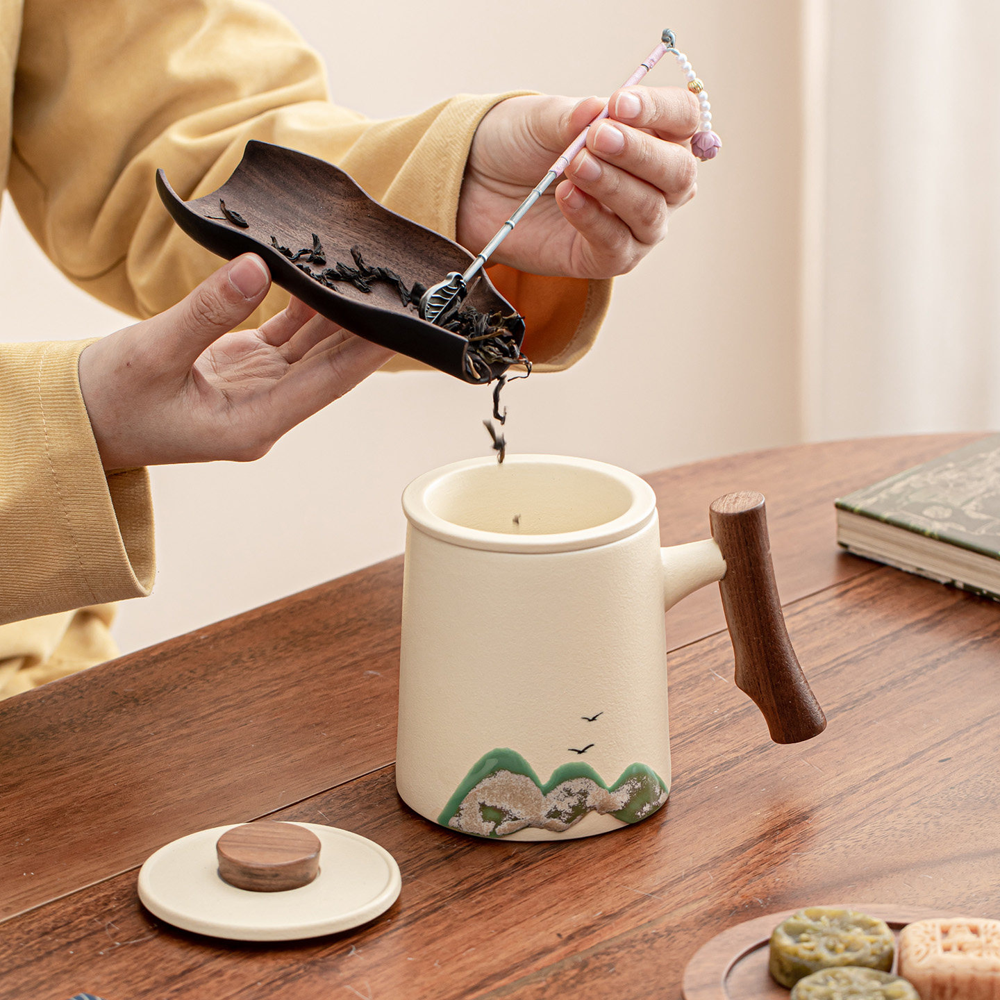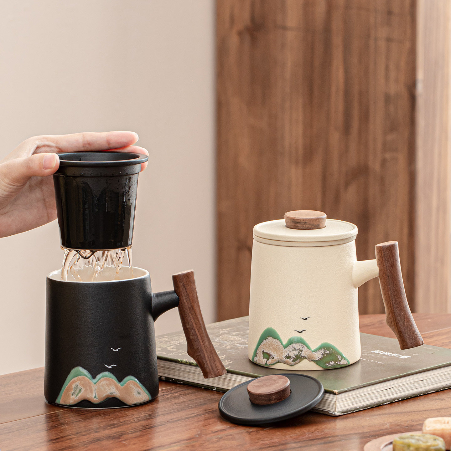 陶瓷茶水分离泡茶杯子带盖过滤大容量办公室泡茶杯喝茶水杯马克杯