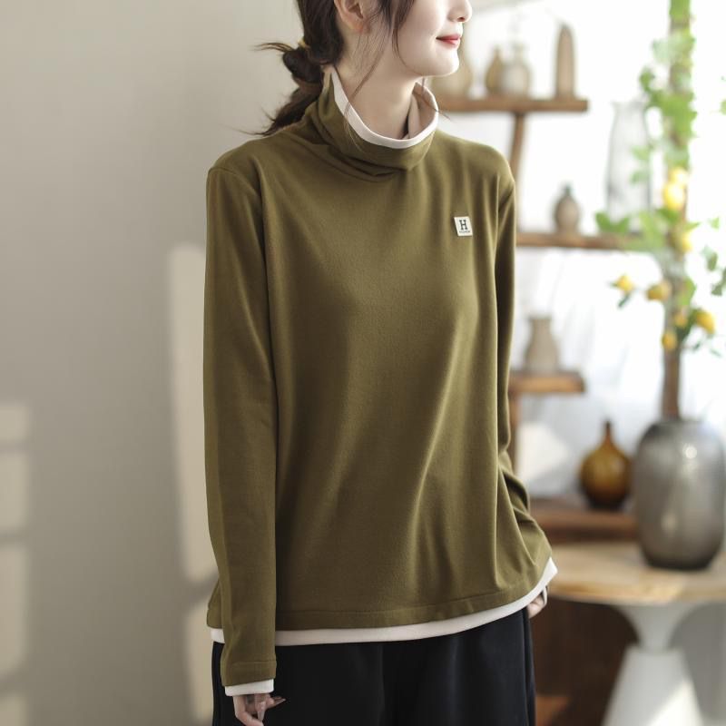 2024年新款高领设计双面德绒打底衫女秋冬妈妈装显瘦减龄内搭T恤