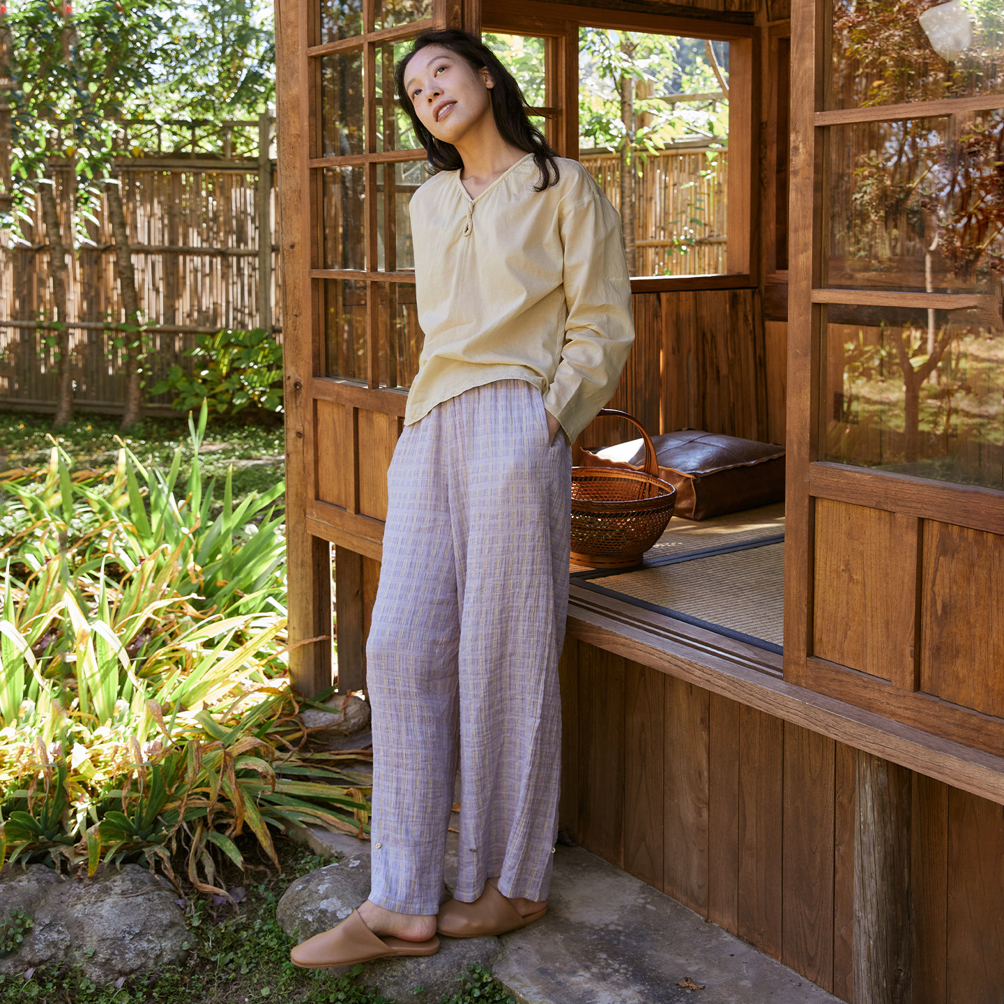 纯棉 柔软 自然柔和 轻盈自在 春夏长裤长袖家居服套装 朵朵可可