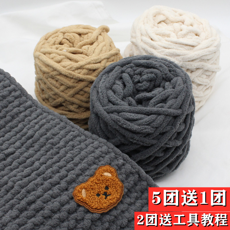 冰条线手工diy粗毛线编织小熊围巾毛线团勾钩针拖鞋线自织毛线球