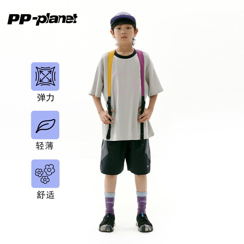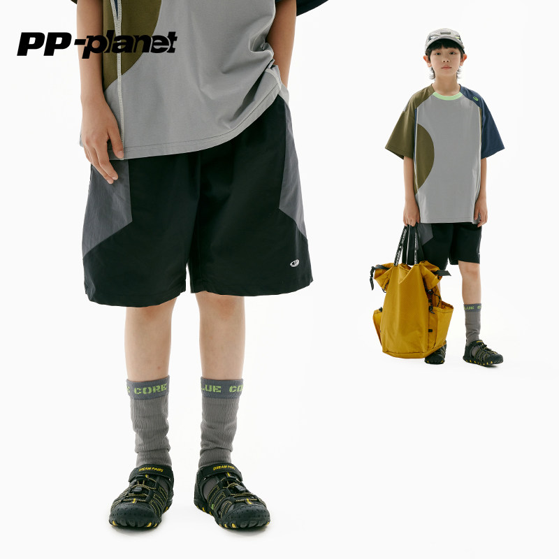PP星球男童短裤夏季新款中大童弹力轻薄五分裤舒爽拼色中裤潮