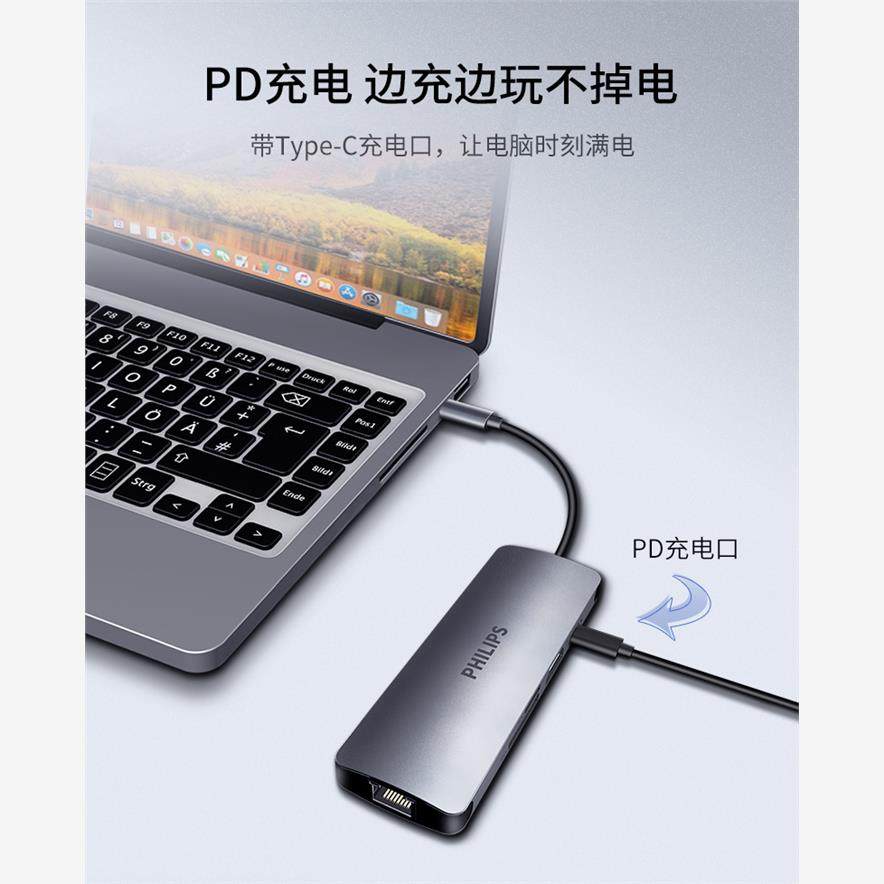 飞利浦typec拓展坞hdmi扩展坞电脑usb转接头hub集线器air雷电3多合一配件多接口网线转换器适用于macbookpro