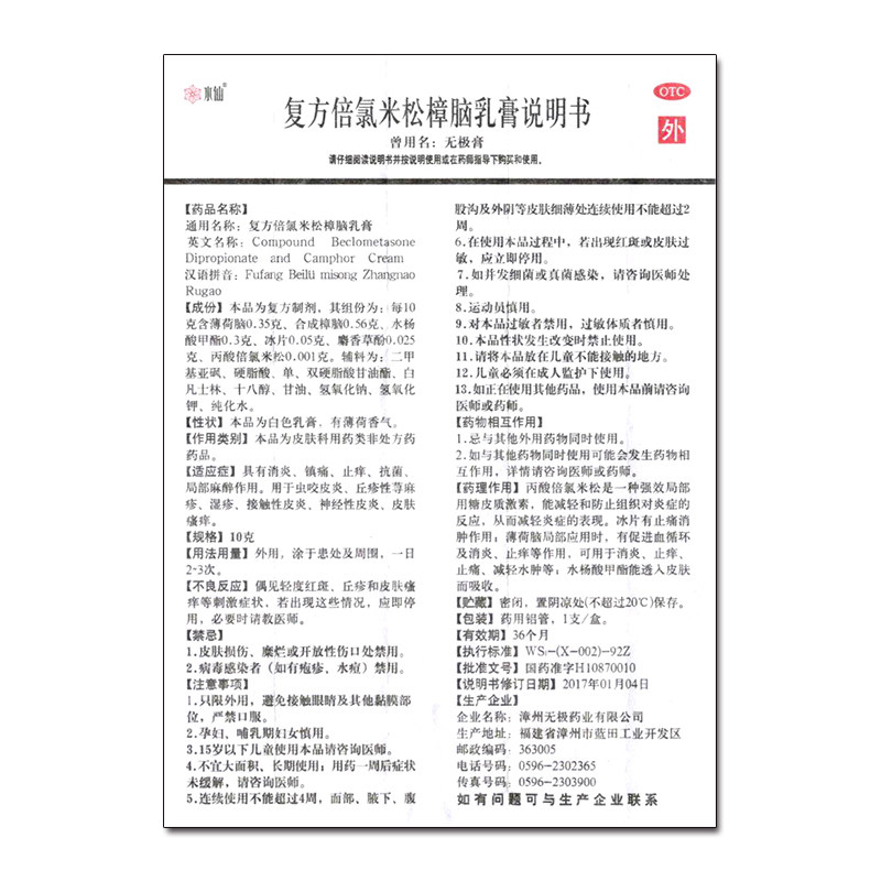 【水仙】复方倍氯米松樟脑乳膏10g*1支/盒湿疹消炎神经性皮炎荨麻疹止痒