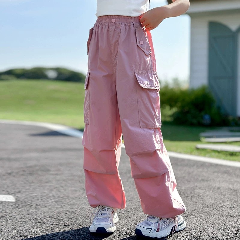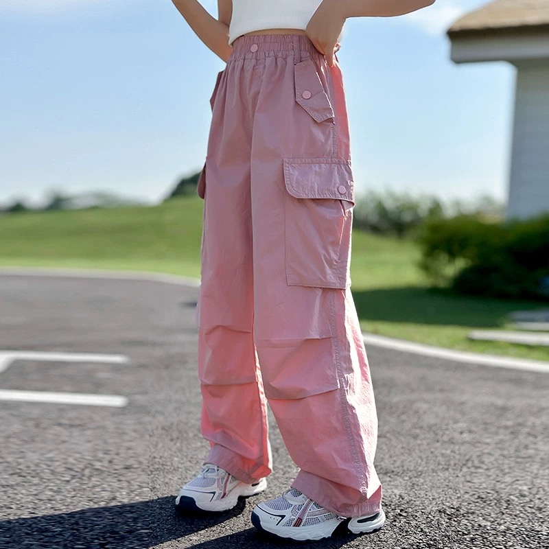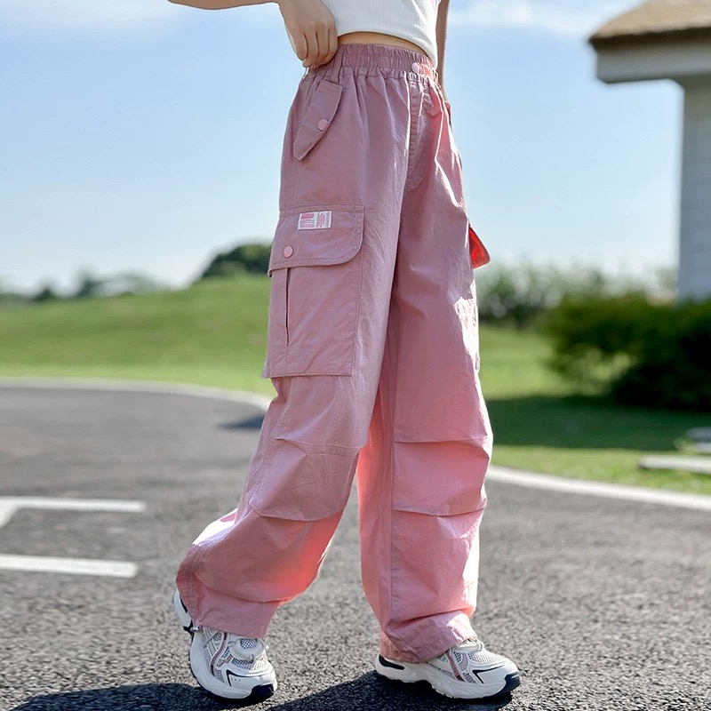 女童工装裤春秋款2025新款儿童长裤中大童春秋季休闲直筒宽松裤子