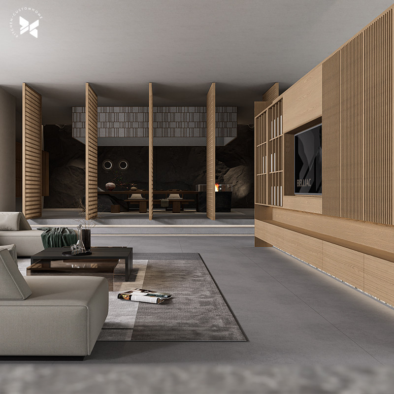 佰丽爱家木纹风电视柜大平层别墅整家客餐厅柜子设计定制【拙世】
