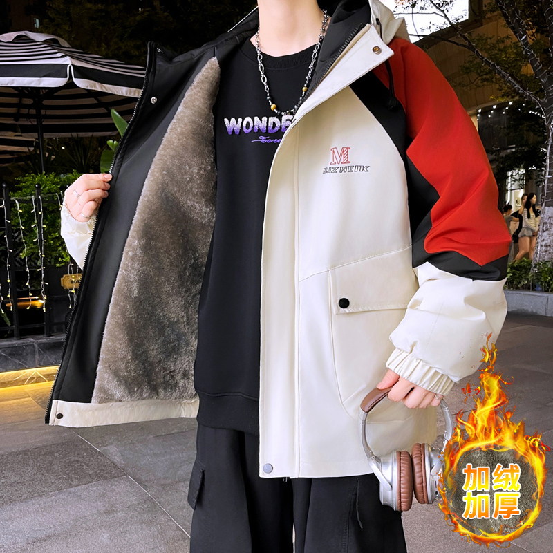 青少年宽松加绒加厚派克服13男孩15岁中学生14大童16潮牌帅气棉衣