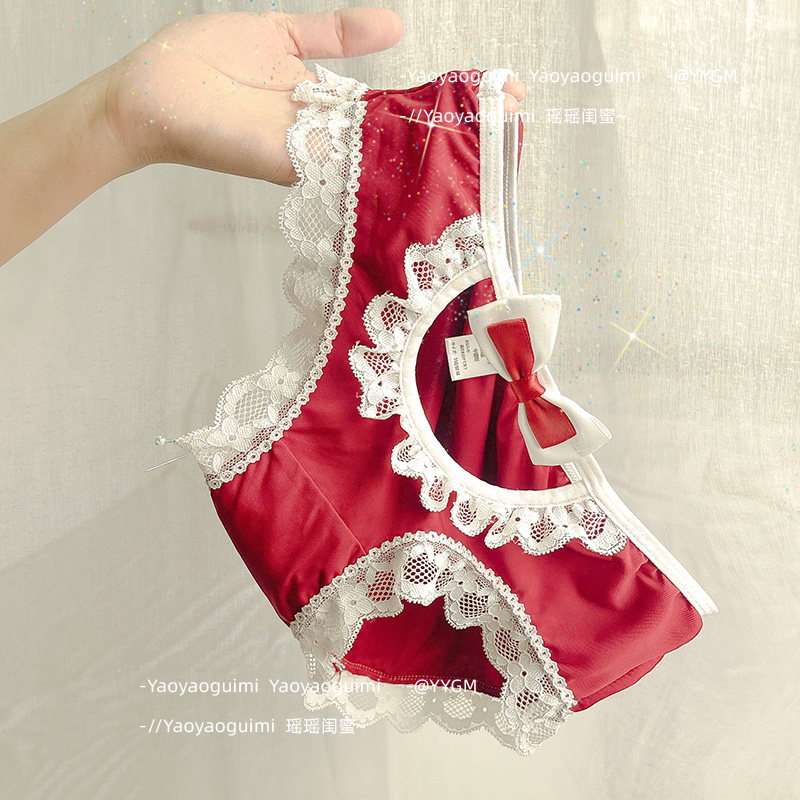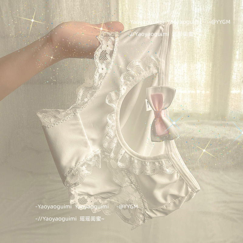 日系甜美少女镂空诱惑冰丝大码内裤女学生无痕冰凉蕾丝低腰三角裤