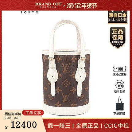 中古9新LV(路易威登)NANO BUCKET白色老花斜挎包