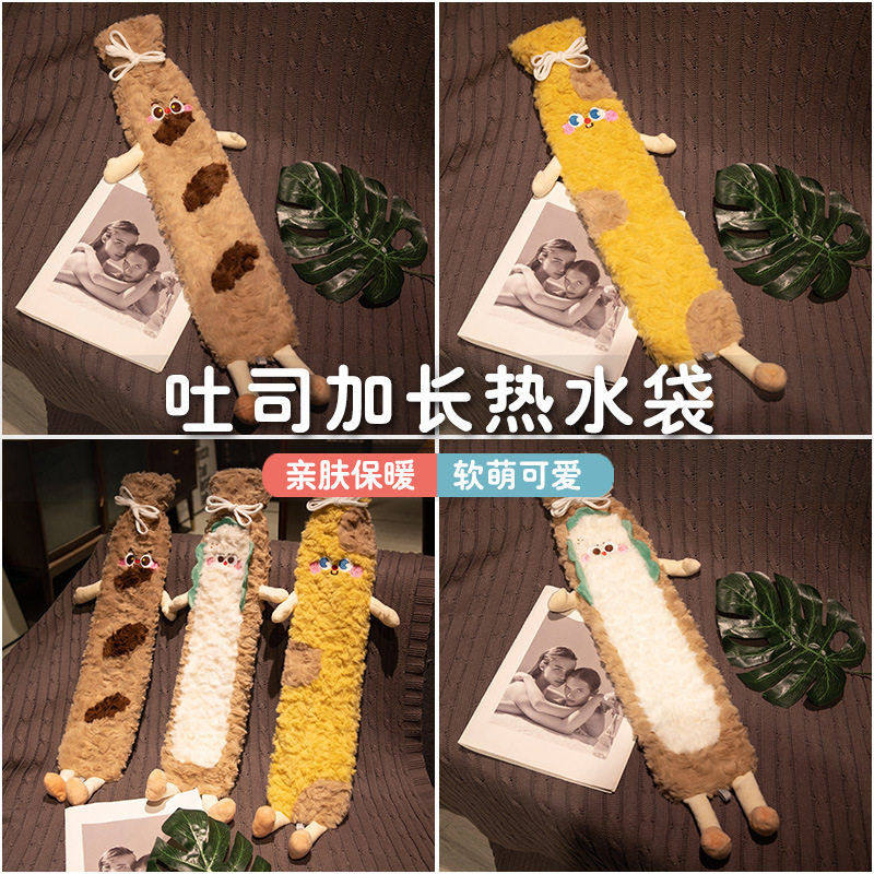 抖音新品热水袋加厚吐司面包暖水袋特大号被窝睡觉暖脚毛绒玩具