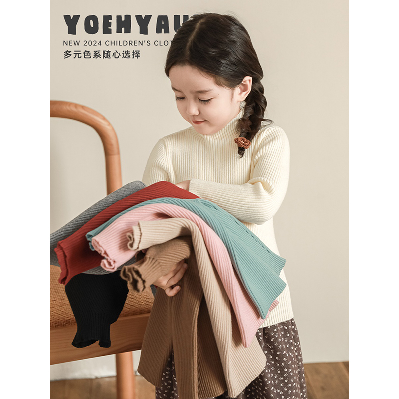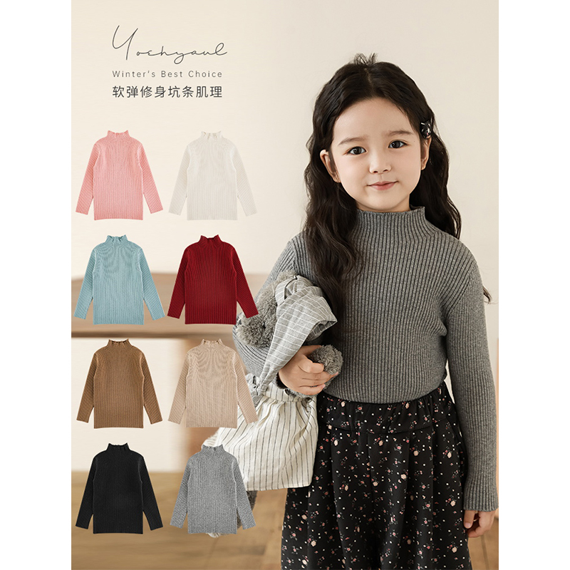幼悠女童纯色高领毛衣打底衫修身款冬季元气可爱防风保暖百搭上衣