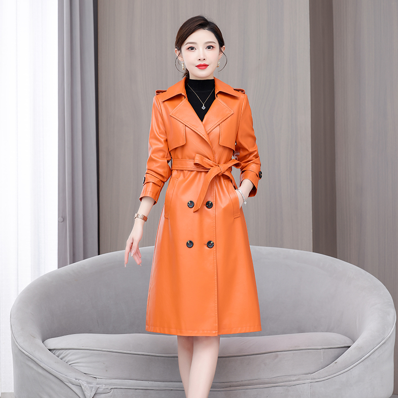 2025春秋季新款真皮皮衣女中长款韩版修身绵羊皮气质系带风衣外套