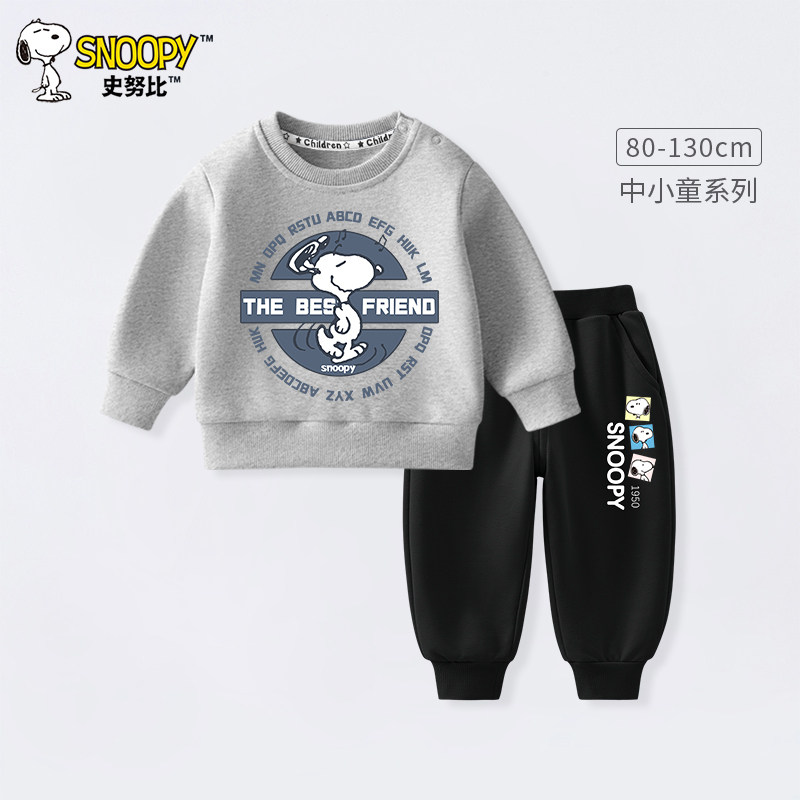 史努比宝宝卫衣套装秋季2025新款男童帅气童装婴幼儿秋装运动衣服