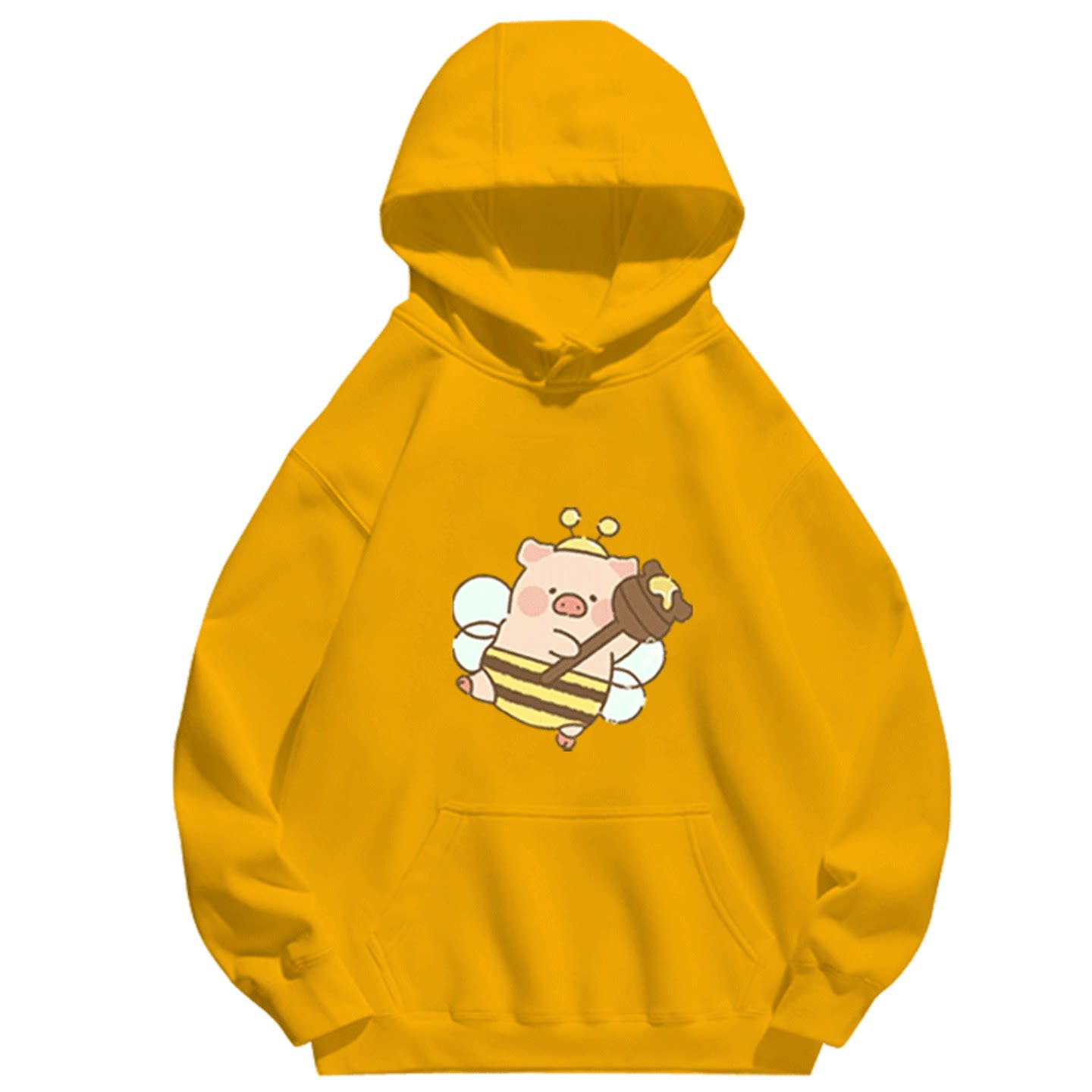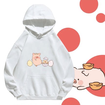 LULU猪卡通粉红小猪秋冬情侣可定制带帽卫衣卡通可爱印花休闲男女
