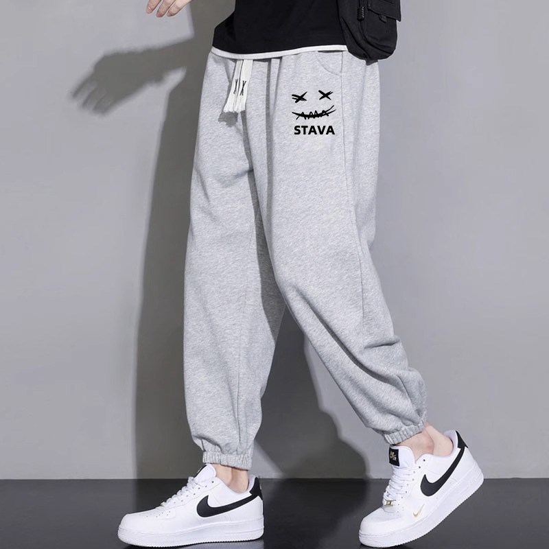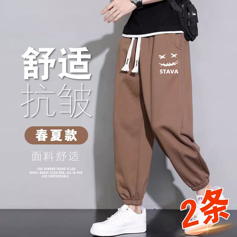 初中生休闲运动裤男春秋季新款男士宽松束脚九分裤潮流抽绳哈伦裤