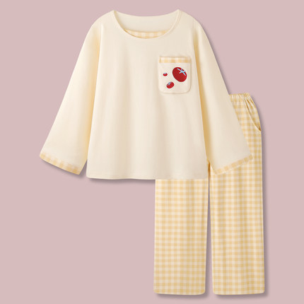 『奶酪番茄』格纹纯棉睡衣女款春秋冬季新款长袖可外穿家居服套装