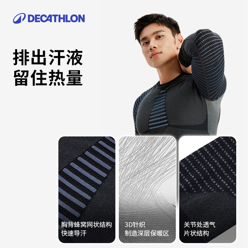 迪卡侬滑雪快干衣男运动排汗压缩紧身衣秋冬户外保暖内衣套装OVW1