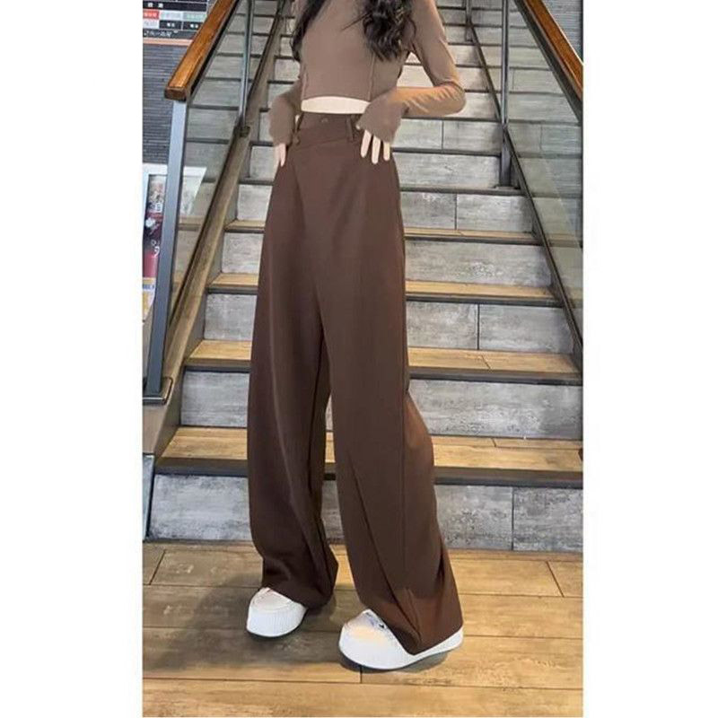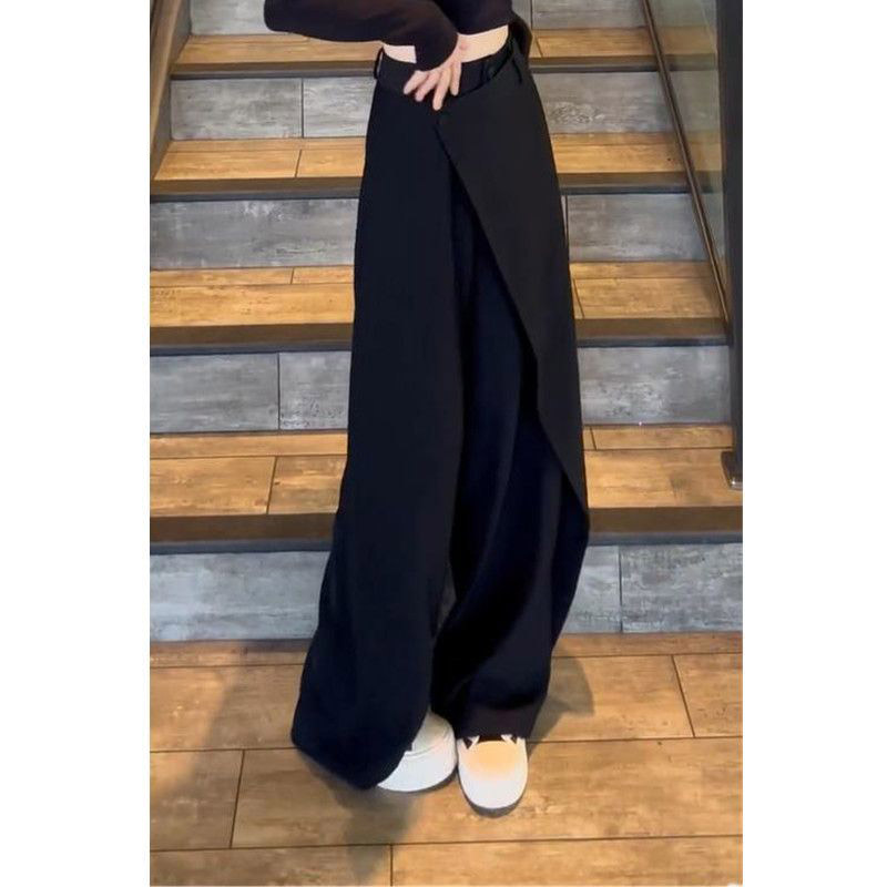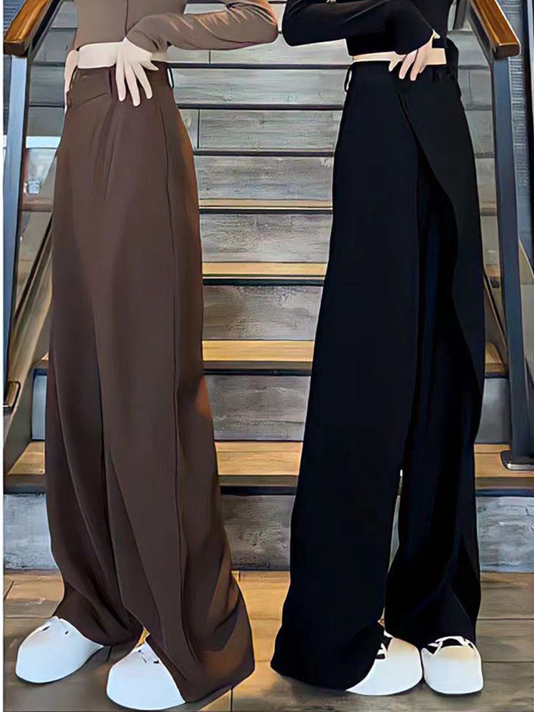 不规则拼接直筒阔腿裤女2024秋季新款炸街垂感西装裤设计感长裤子