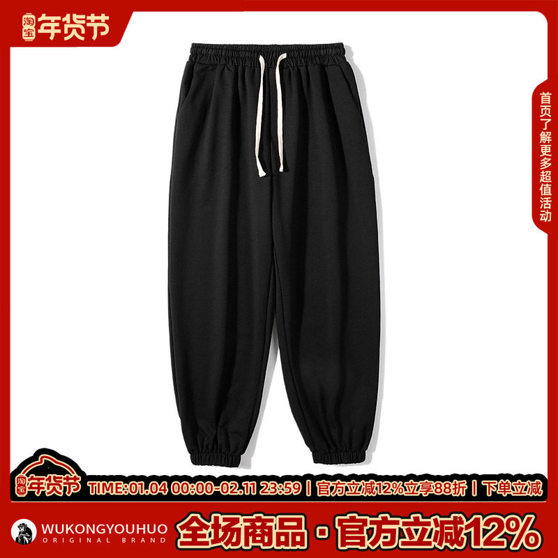 悟空有货复古简约纯色束脚卫裤男潮牌街头宽松情侣休闲百搭运动裤