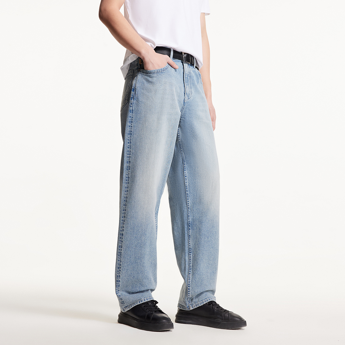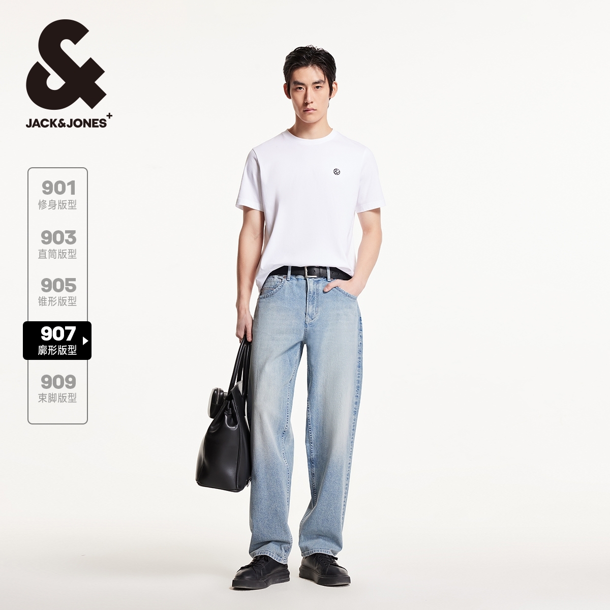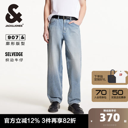 杰克琼斯男装夏季新款微弹织边牛仔布休闲宽松牛仔裤子长裤