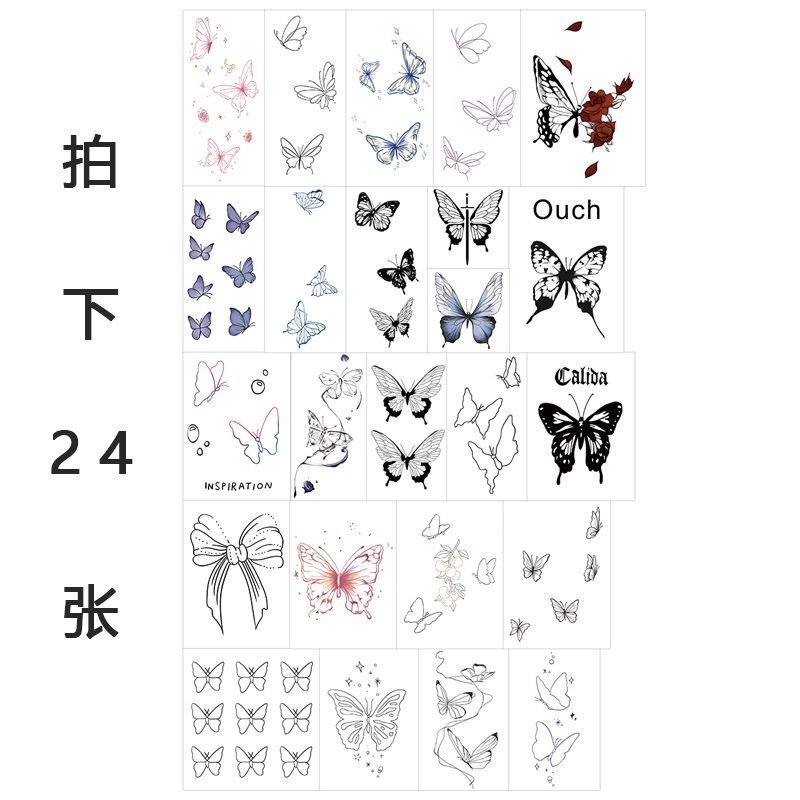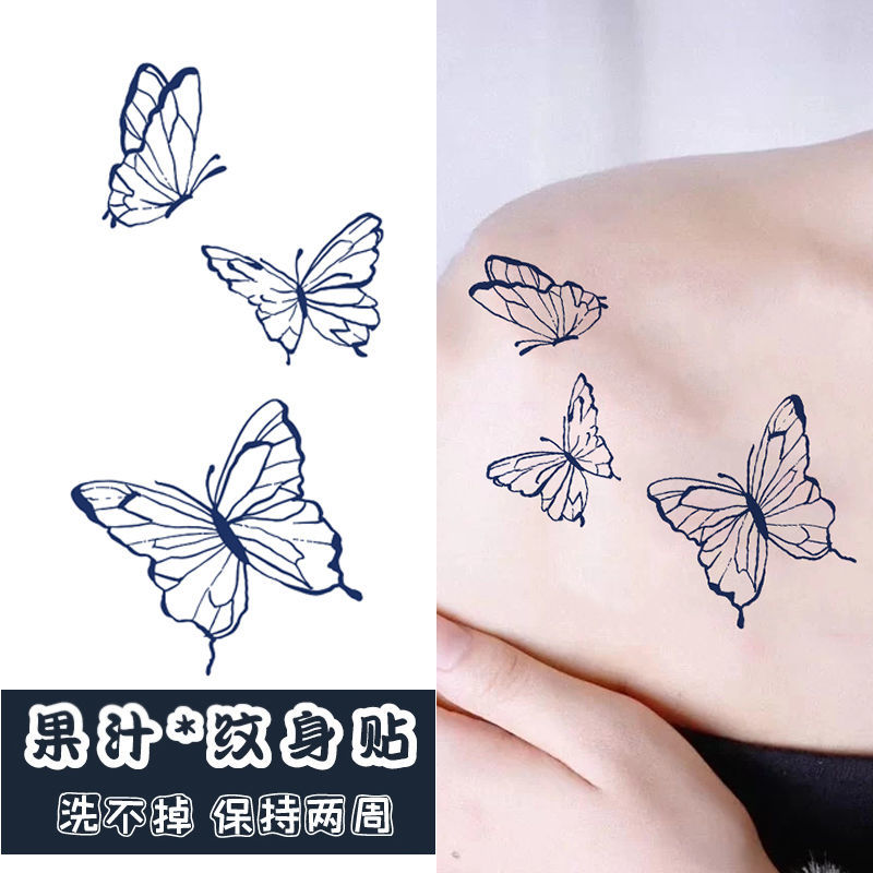 少女性感大腿线条蝴蝶结草本果汁纹身贴半永久防水女持久胸口仿真