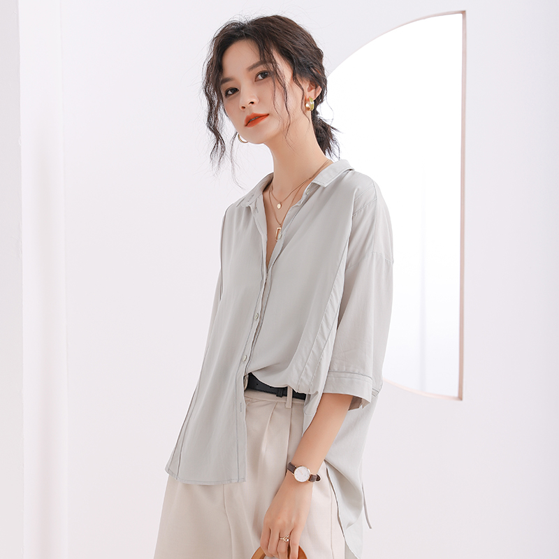 设计感小众衬衫女绑带2025夏季新款韩版宽松休闲五分袖垂感棉衬衣