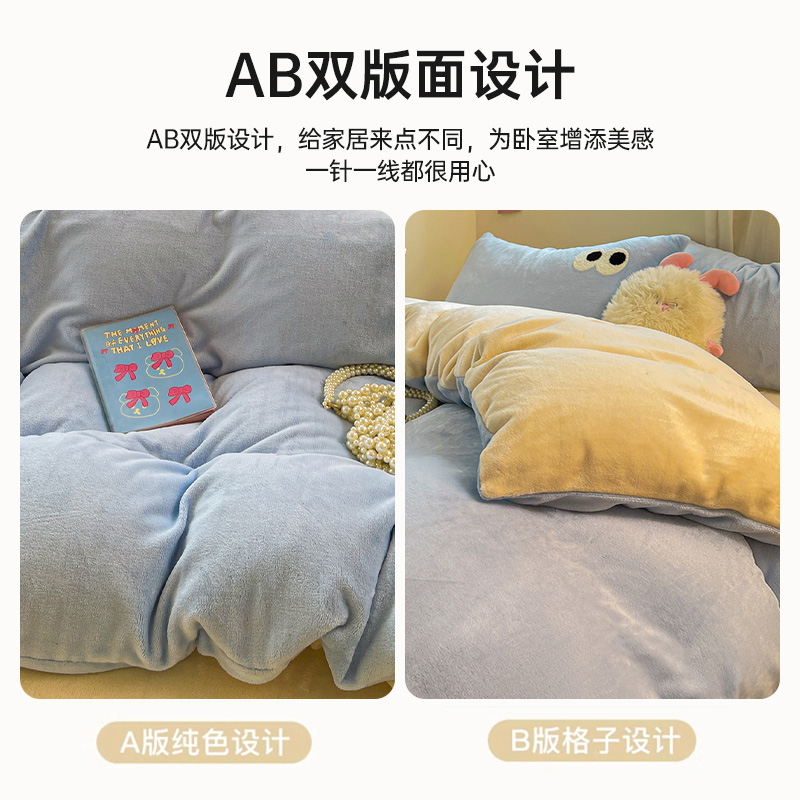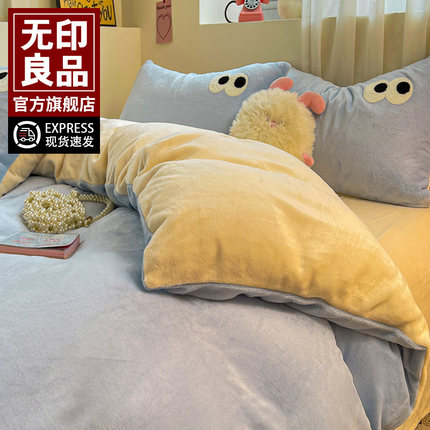无印良品四件套牛奶绒床品2025新款儿童卡通毛巾绣学生床上三件套