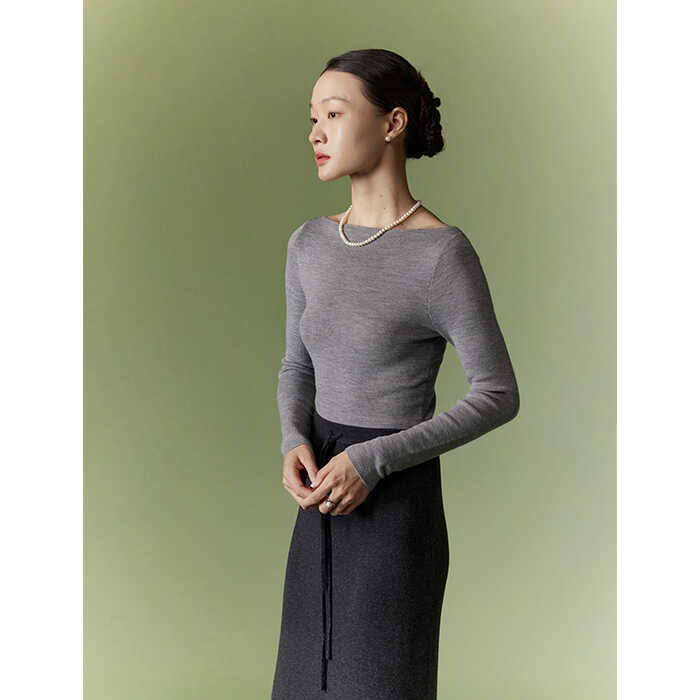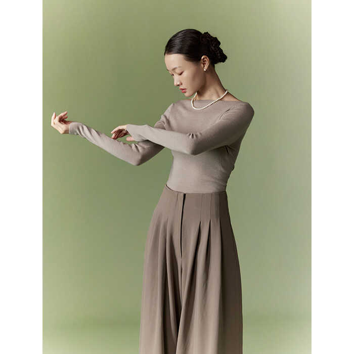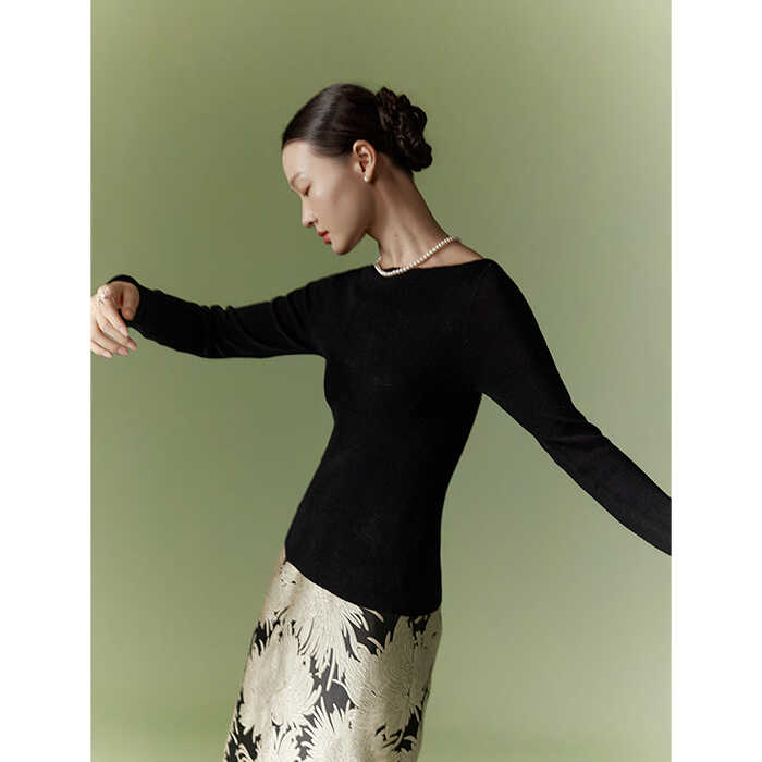小鹿弥雅16针60支扬子纱简约纯羊毛一字领针织打底衫秋冬