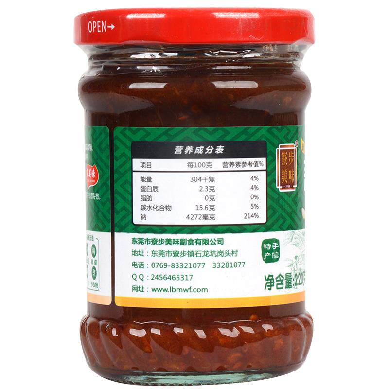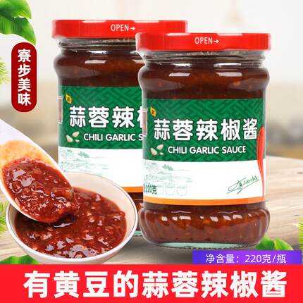 寮步美味 广东东莞风味蒜蓉辣椒酱黄豆蘸酱炒菜香辣调味酱220g