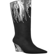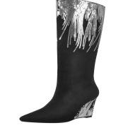 2024外贸秋冬高筒尖头坡跟高跟时装靴性感时尚长筒靴女PU欧美