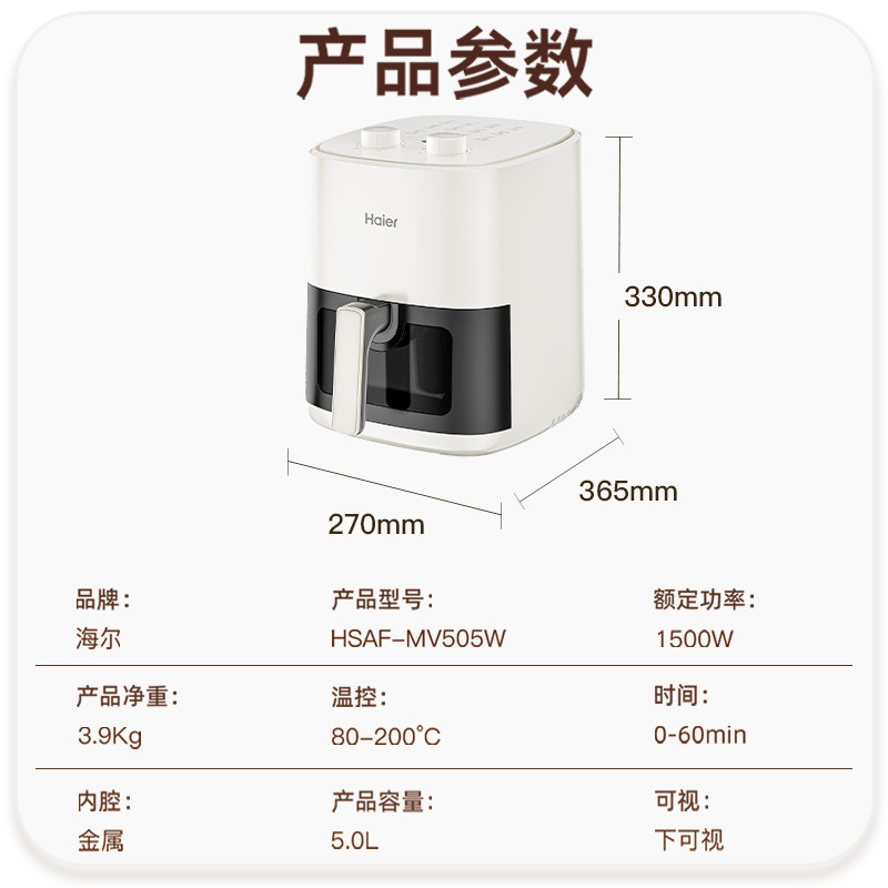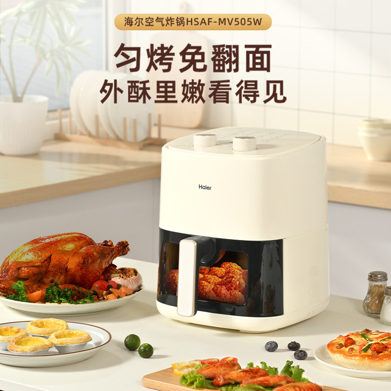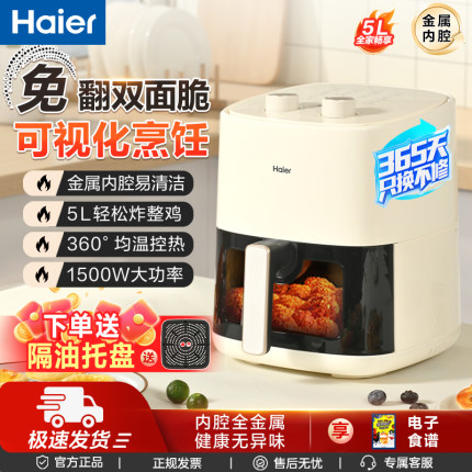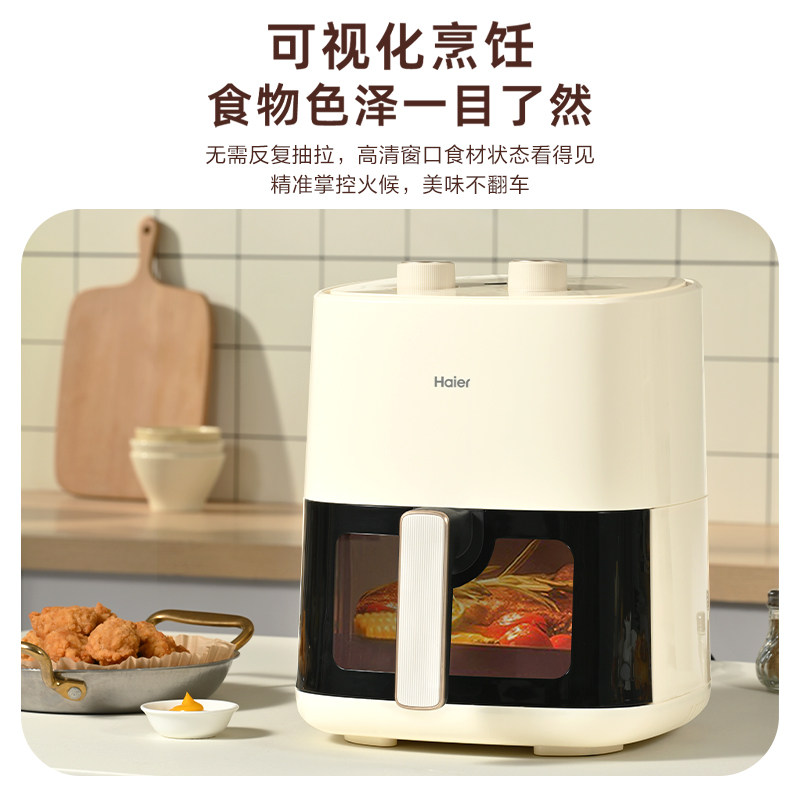 海尔空气炸锅家用新款智能可视大容量免翻面多功能一体机烤炸一体