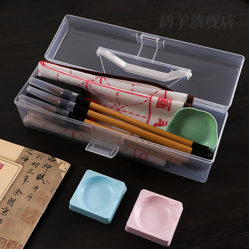 毛笔书法收纳盒长方形塑料盒子小学生文房四宝套装专用盒手提工具箱国画油画水彩水粉颜料收纳箱毛笔盒工具盒
