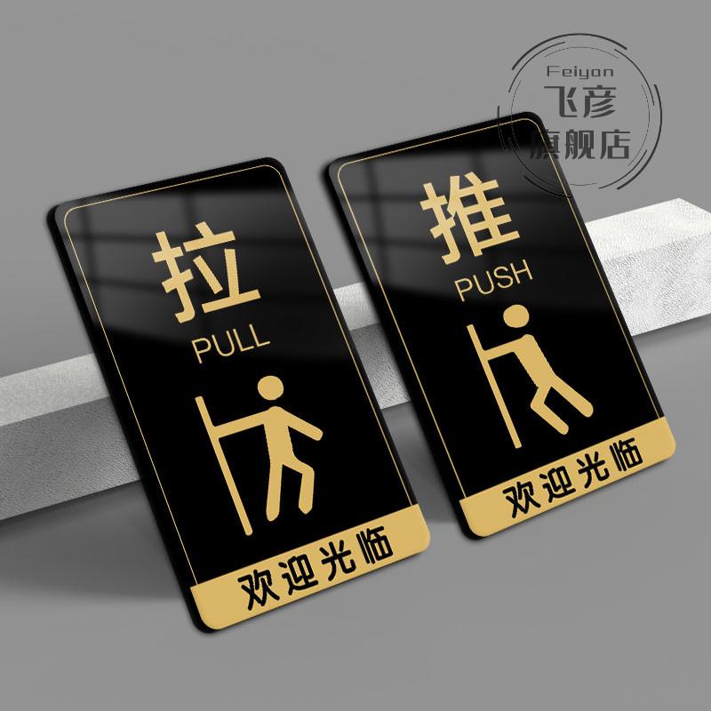推拉门贴玻璃门推拉提示门贴左右移门标识牌推拉字贴标志牌门上请往外拉门牌温馨提示牌拉推亚克力标牌贴定制