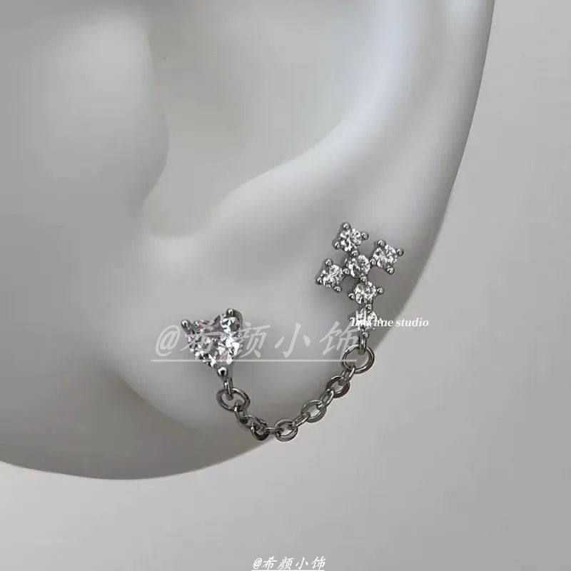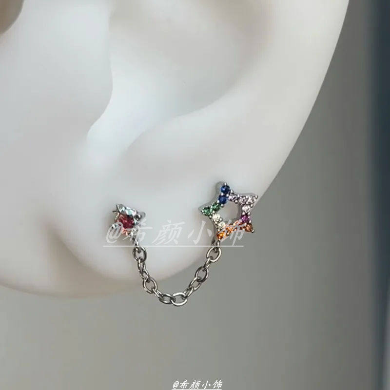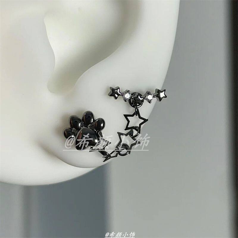 双耳洞猫爪耳钉独特小众设计感耳环夏天轻奢高级感耳饰一体式链条