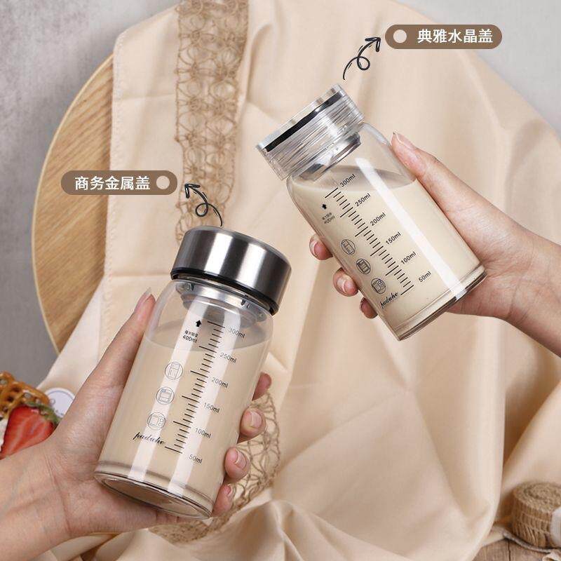 热销带刻度牛奶杯早餐耐高温迷你高硼硅杯便携玻璃杯子带盖水杯