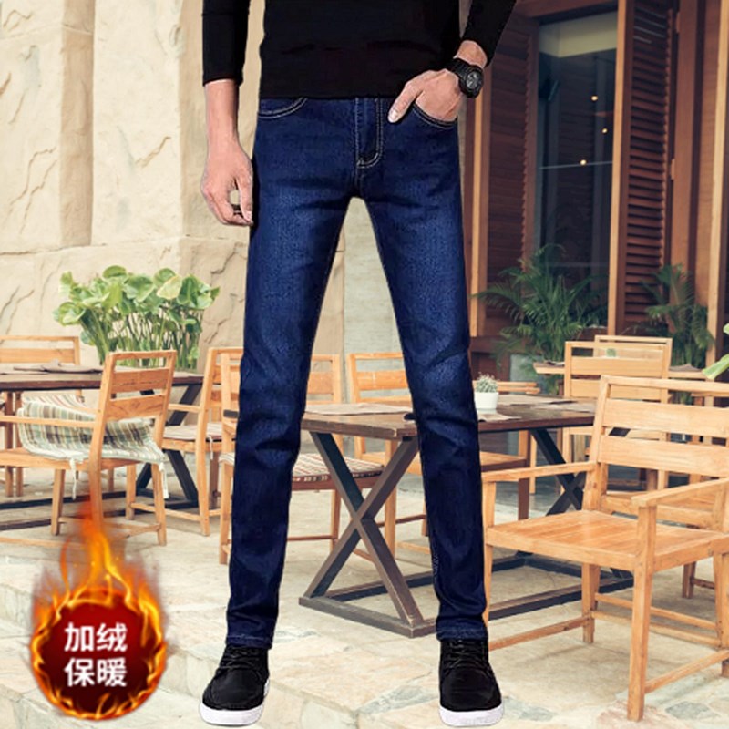 白色加绒牛仔裤男冬季加厚保暖长裤中腰休闲直筒烟管裤百搭裤子男