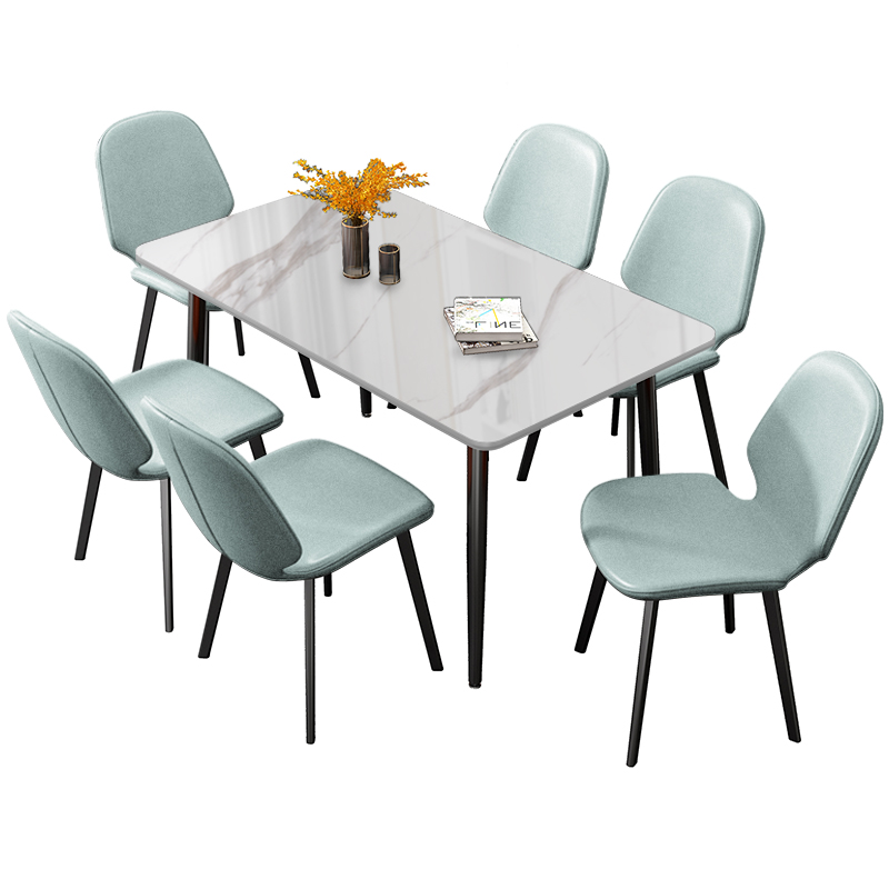 意式亮光岩板餐桌椅组合现代简约长方形科技布家用小户型饭桌子