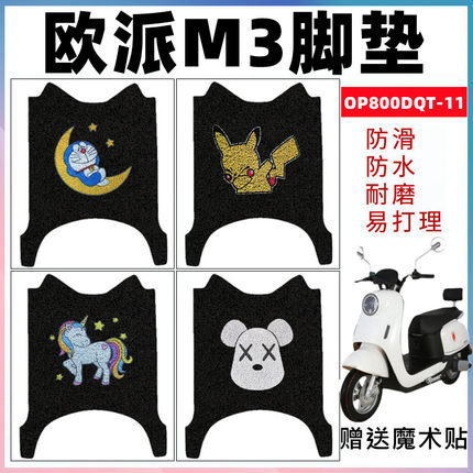 适用欧派M3电动车脚垫 OP800DQT-11电瓶车卡通防水防滑丝圈脚踩垫