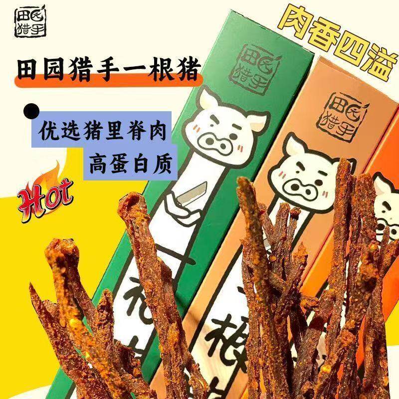 田园猎手一根猪嘶哈辣超长猪肉条原味黑胡椒休闲解馋追剧肉干零食