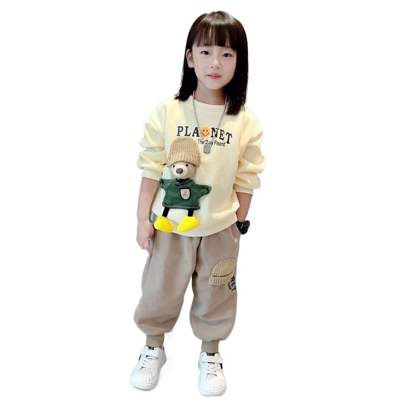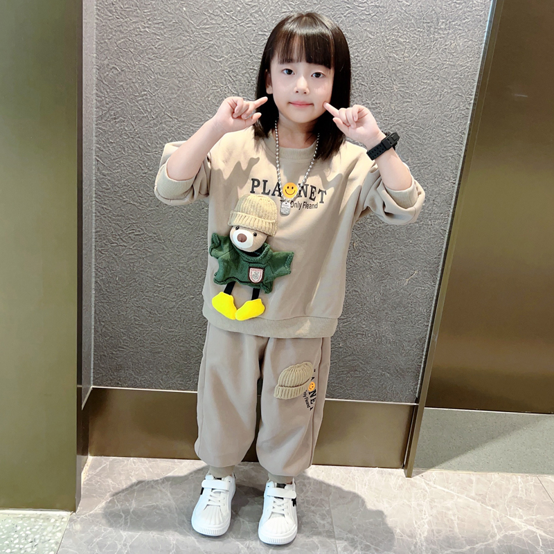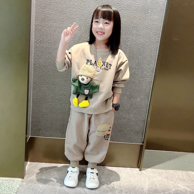 女童春秋新款卫衣套装立体2025小熊中大童洋气时髦儿童运动两件套