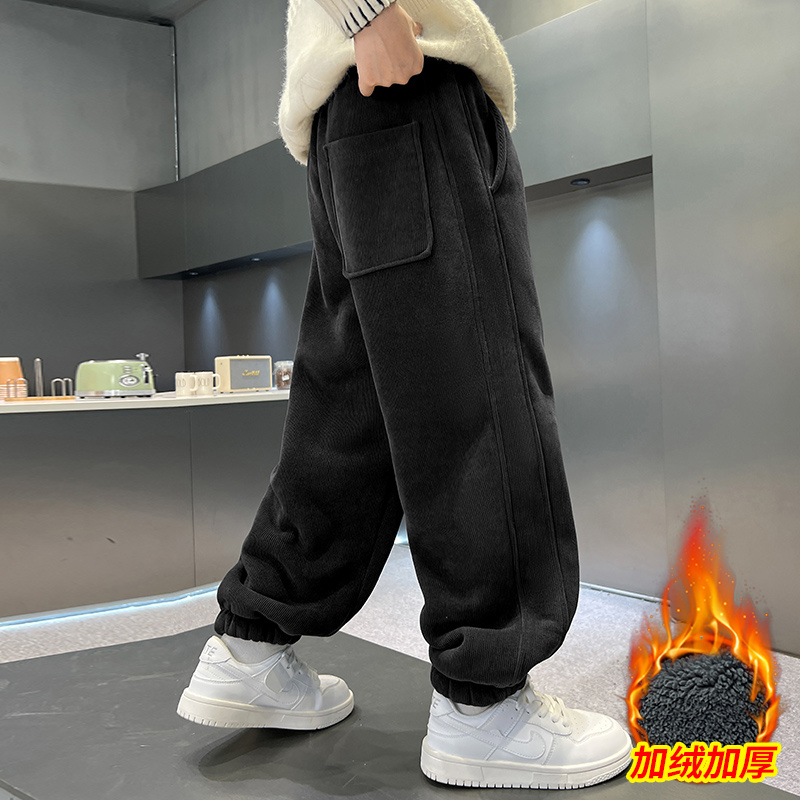 男童冬季裤子2025新款羊羔毛灯芯绒休闲裤保暖儿童秋冬装帅气棉裤