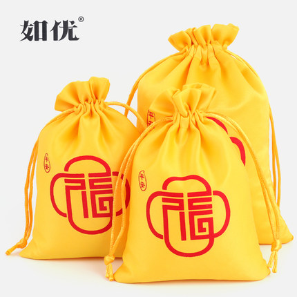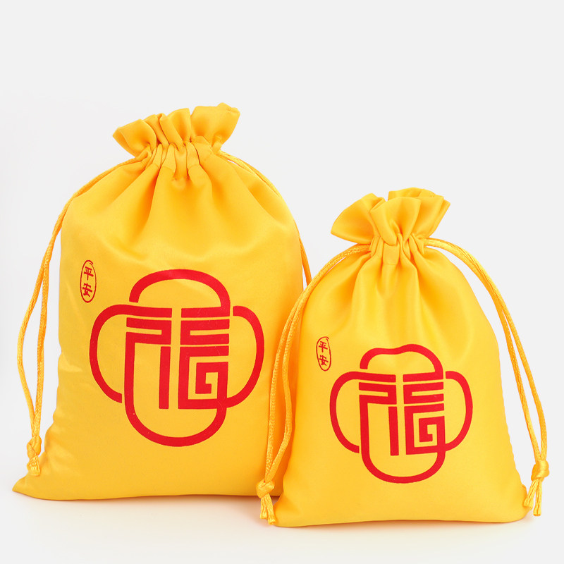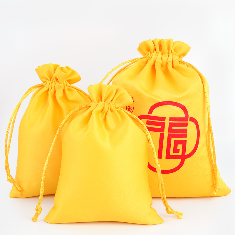 黄色织锦福袋首饰收纳袋束口袋锦囊饰品佛珠礼品抽绳小布袋包装袋