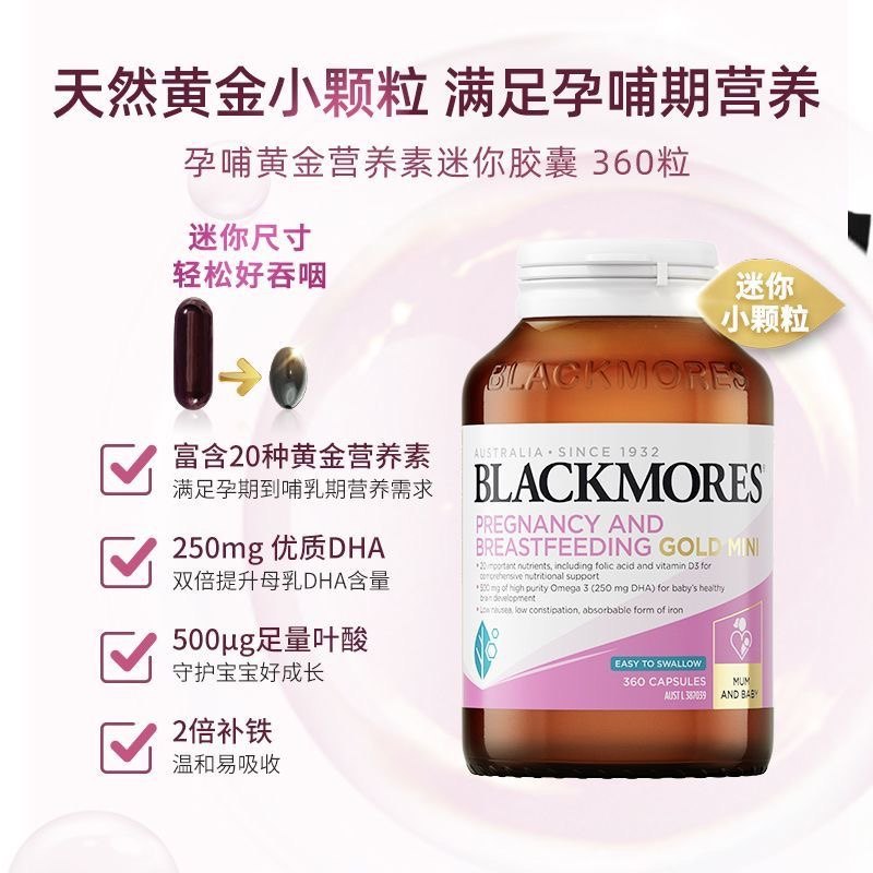 保税仓 澳洲Blackmores澳佳宝孕妇黄金营养素迷你胶囊360粒备孕期