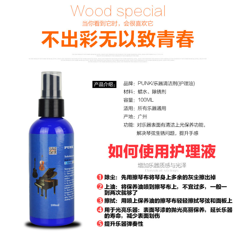 DEDO吉他钢琴护理液钢琴清洁剂PUNK保养套装100mL清洁亮光剂+擦布