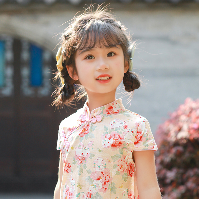 儿童旗袍夏季宝宝兔唐装女童中国风旗袍女孩中式洋气薄款古风裙子