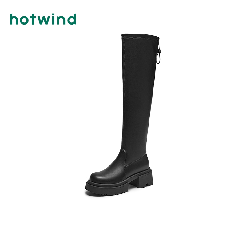 热风女靴2024年冬季新款女款厚底增高过膝长靴黑色粗跟骑士靴子