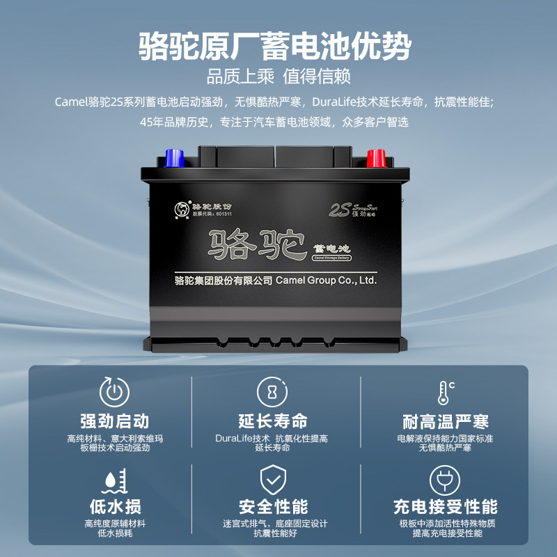 骆驼蓄电池L2400大众速腾朗逸宝来君威帝豪传祺汽车电瓶12v60ah