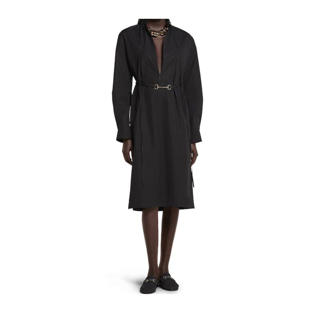GUCCI 女士大衣 835601Z8B1W1000 CO 黑色 饰马衔扣腰带连衣裙