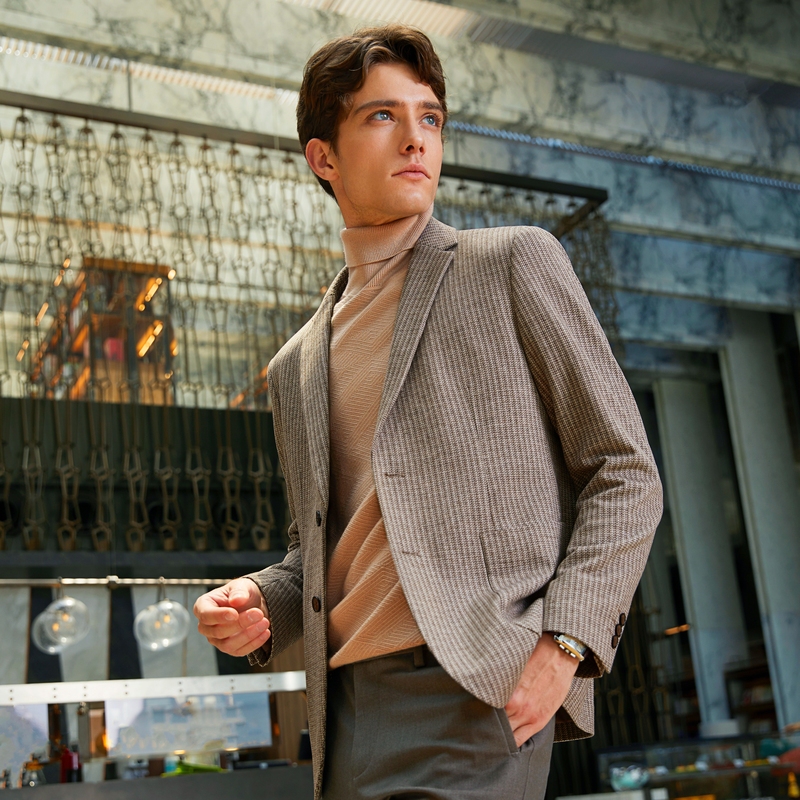 【含羊毛】柒牌男士休闲西服春季新款麦穗纹提花针织单西外套