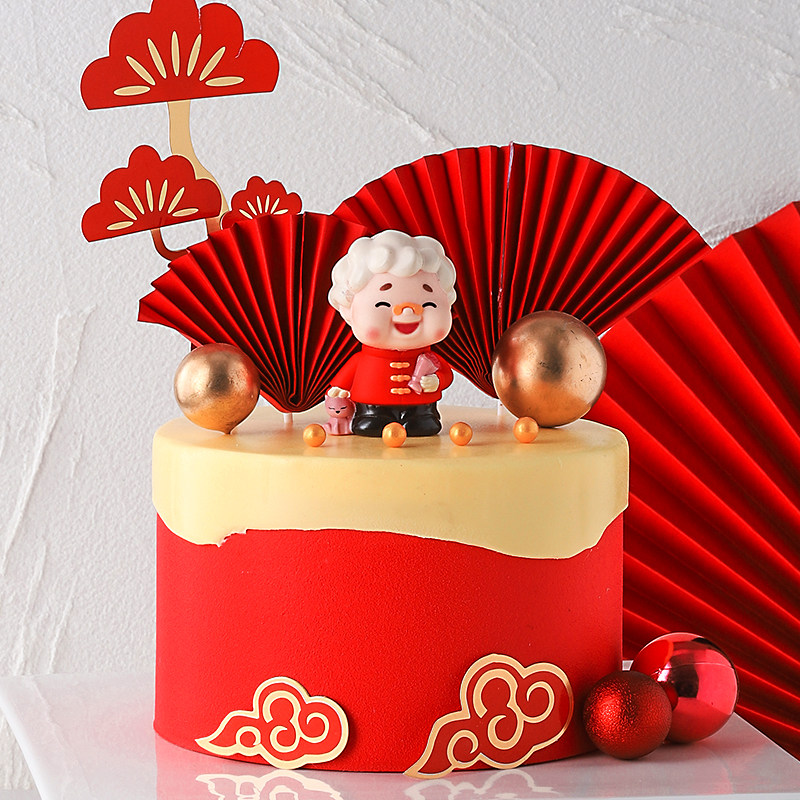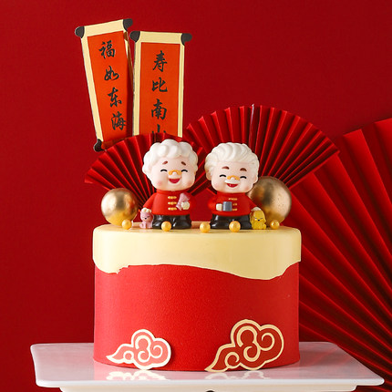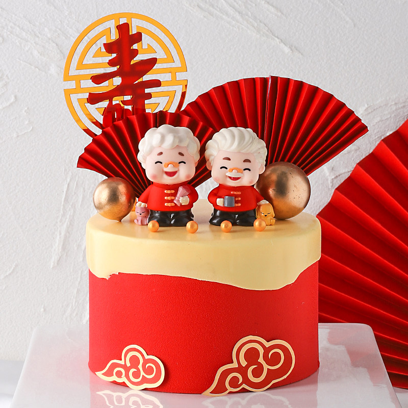 祝寿蛋糕装饰搪胶茶杯爷爷花束奶奶玩偶摆件老人生日贺寿插牌插件